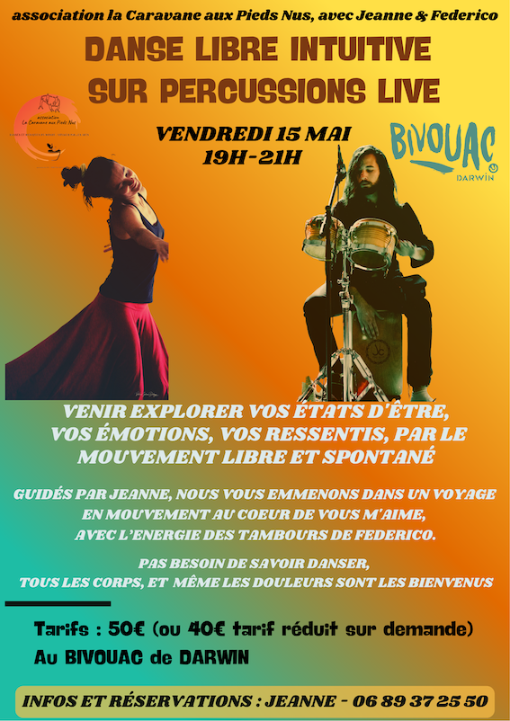 Guidé.e.s en musique et en mouvement, une vague puissante et vibrante, suivi d’un after convivial façon auberge espagnole..
